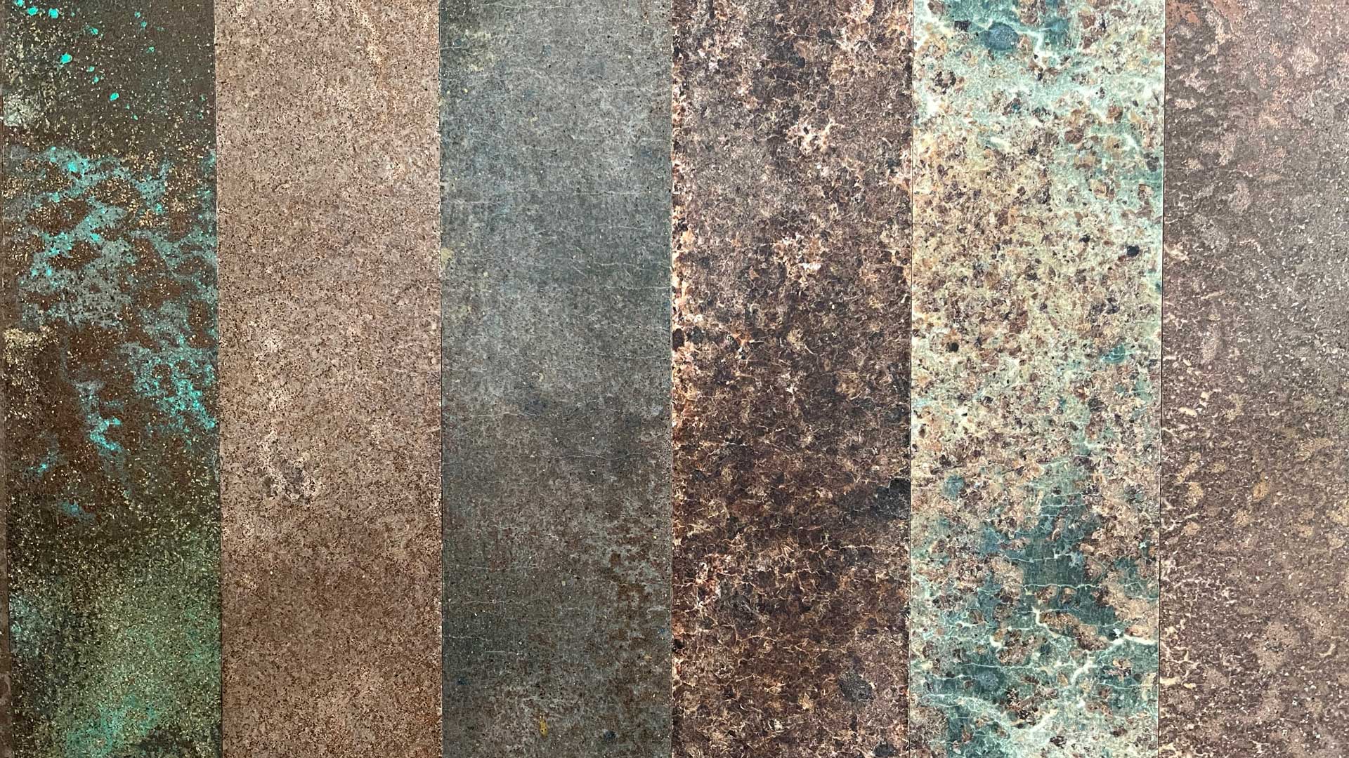 We achieve a range of different colours and textures by using organic powders or by-products such as fruit stone, ground metals, powdered marble, charcoal dust and natural pigments.